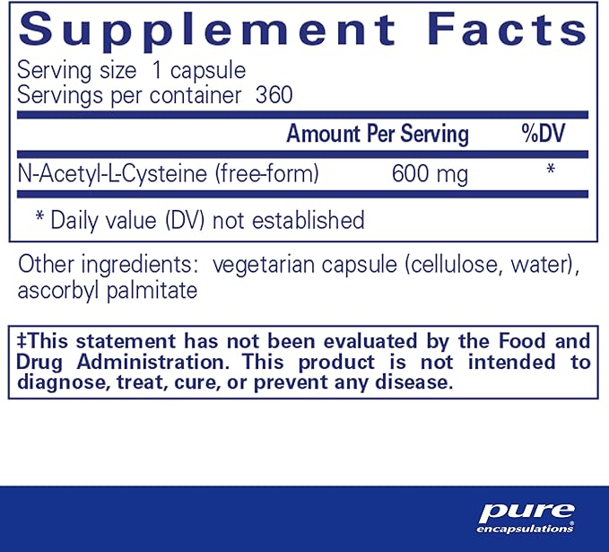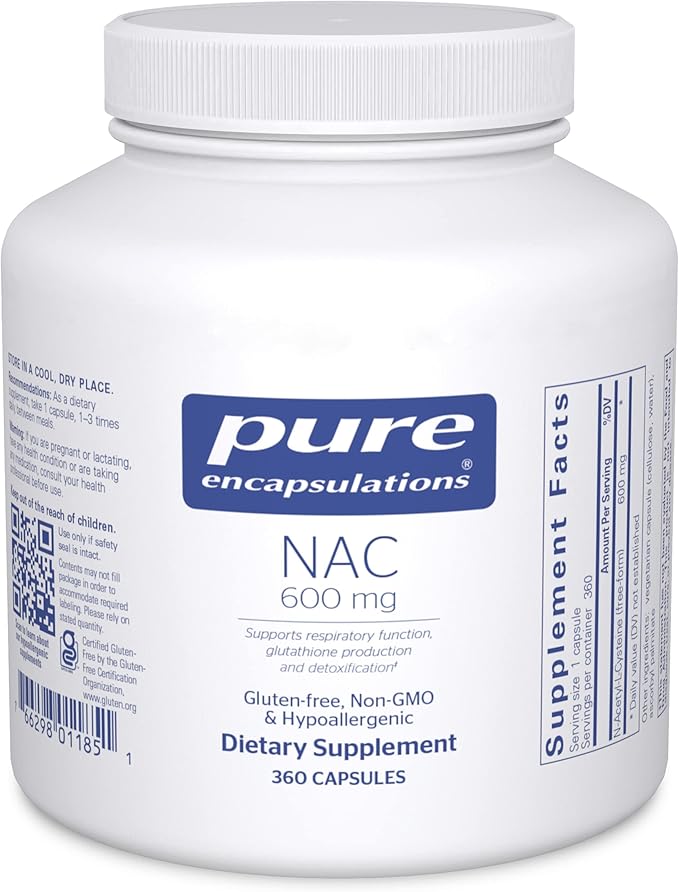 Pure Encapsulations NAC 600 mg - N-Acetyl Cysteine NAC Supplement for Lung Health & Immune Support, Liver Support & Antioxidants* - with Freeform N-Acetyl-L-Cysteine - 360 Capsules