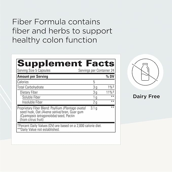 Integrative Therapeutics Fiber Formula - Colon Support Supplement for Healthy Digestion* - Good Source of Dietary Fiber for Gut Health Support* - Dairy-Free & Vegan - 120 Capsules (24 Servings)