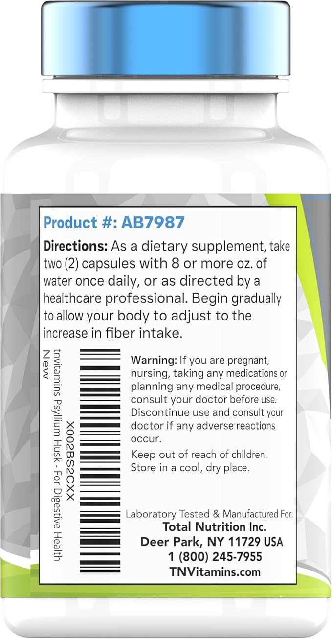 - 🌾 TNVitamins Psyllium Husk Capsules are Manufactured, Lab-Tested, & Packaged in the USA