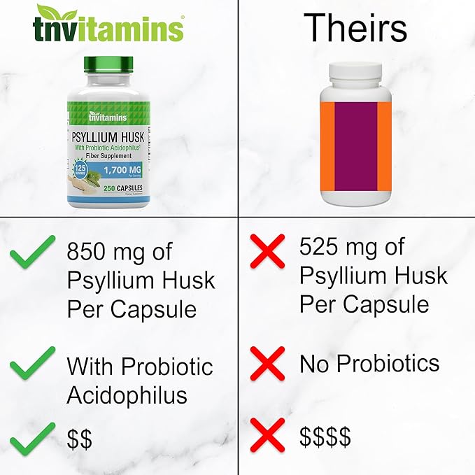 - 🌾 TNVitamins Psyllium Husk Capsules Supplement Also Contains Powerful Probiotic Acidophilus to Support Gut Health!