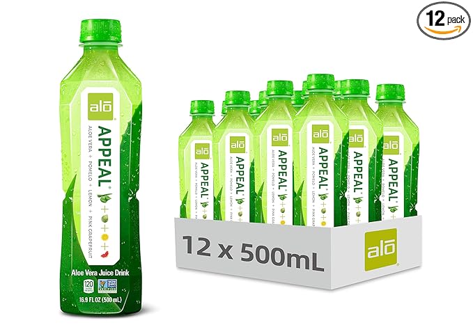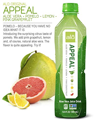 ALO Aloe Vera Juice Drink | APPEAL - Pomelo + Grapefruit + Lemon | 16.9 fl oz, Pack of 12 | Plant-Based Drink with Real Aloe Pulp