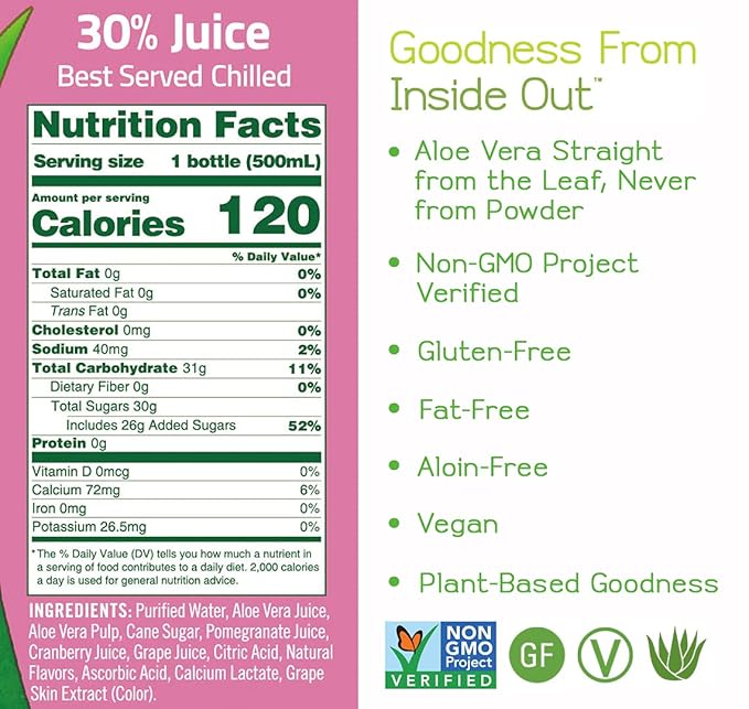 - FARM-TO-BOTTLE DELICIOUSNESS: Great flavor comes from using real fruit and vegetable juices as well as organic and other fine ingredients combined with real, fresh aloe juice and pulp; No artificial anything