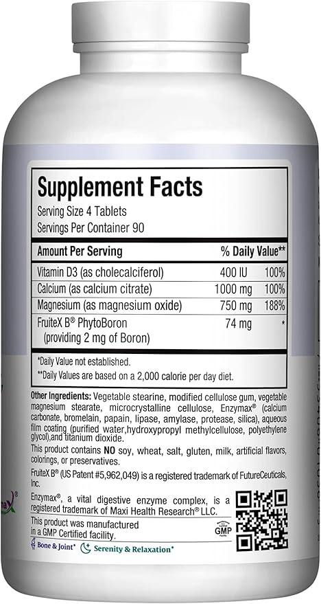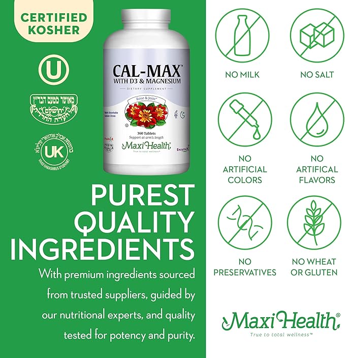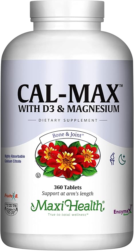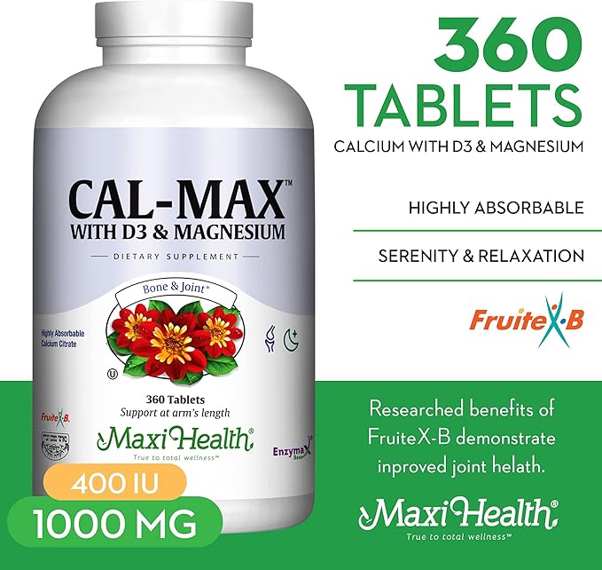 Maxi Health Calcium Magnesium Supplement with Vitamin D3 and Boron - Kosher Bone Health & Nighttime Formula, Calcium Citrate CalMag & Vitamin D (360 Tablets)