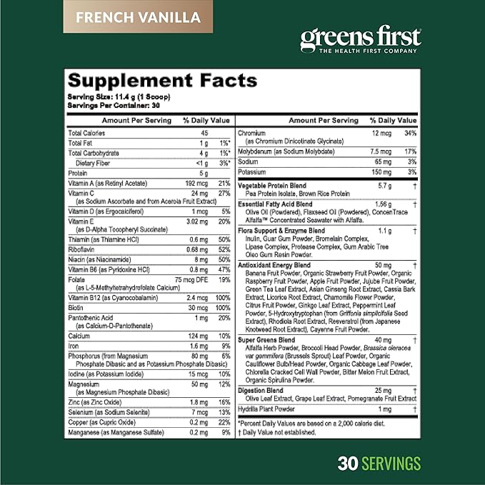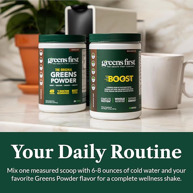 - Versatile and Delicious. Greens First Boost comes in indulgent French Vanilla or rich Dutch Chocolate flavors, perfect for creating a nutritious wellness shake when mixed with Greens First Phytonutrient Powder. Discover a better way for providing a delicious and convenient way to boost energy and enhance overall health with Greens First Boost!