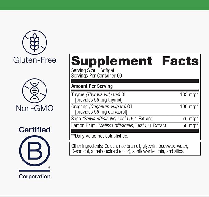 - Thyme Oil & Oregano Oil Blend: Each softgel contains a potent blend of thyme essential oil and oregano oil to support digestive and respiratory tract health*