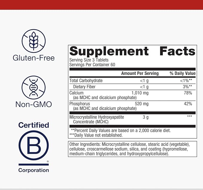 - High Calcium Content: Each serving of three tablets provides over 1,000 mg of calcium as MCHC, fulfilling 78% of the daily recommended intake