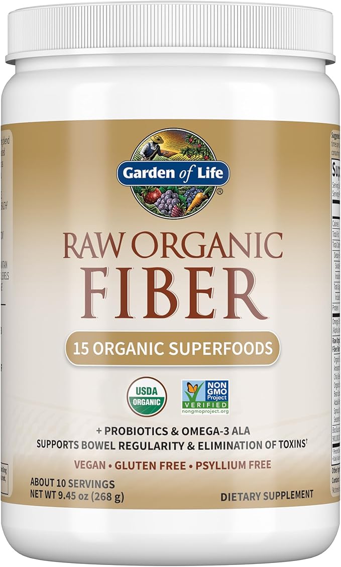 Garden of Life Raw Organic Fiber Supplement Powder - 10 Servings, 15 Organic Superfoods + Probiotics & Omega-3 ALA, 4g Soluble & 5g Insoluble Fiber for Regularity - Psyllium Free