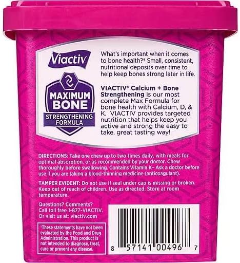 Viactiv Calcium +Vitamin D3 Supplement Soft Chews, Caramel, 60 Chews - Calcium Dietary Supplement for Bone Health