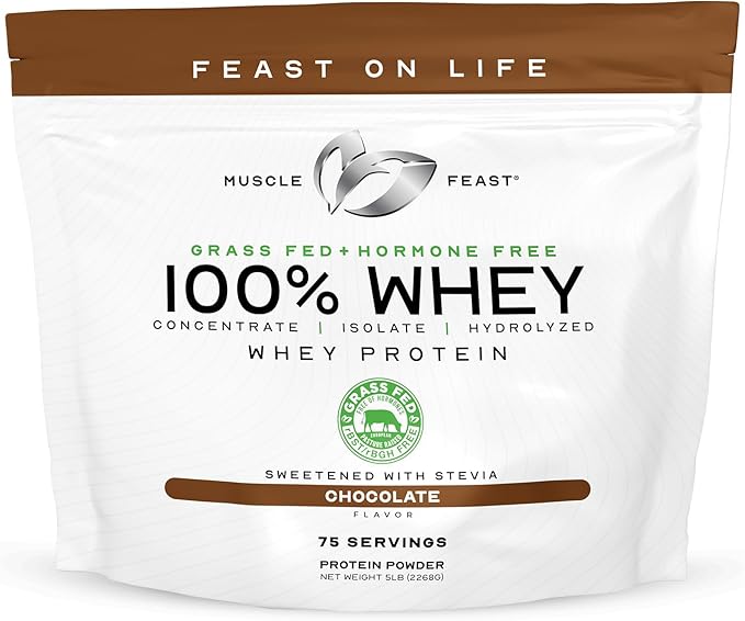 Muscle Feast 100% Grass Fed Whey Protein Powder, All Natural Hormone Free Paure Raised Whey Protein Powder for Women & Men- Whey Concentrate, Isolate & Hydrolyzed Protein Powder Blend - Chocolate, 5lb