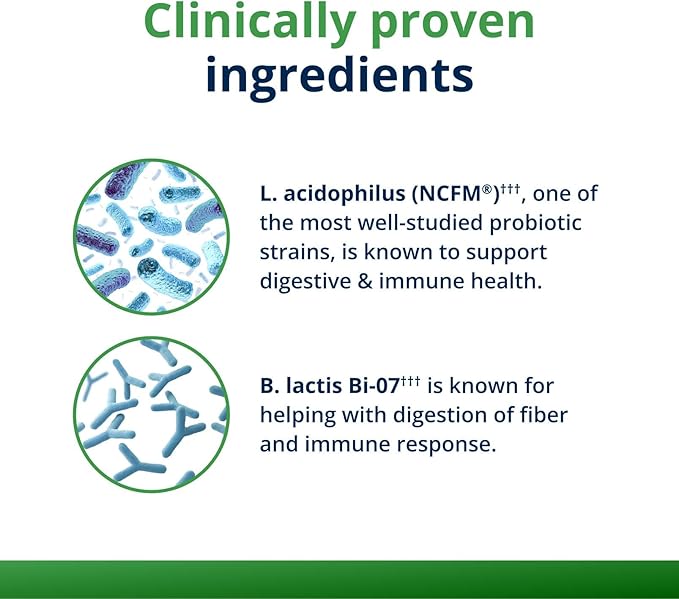 - Daily Probiotic Support: This daily probiotic features B. lactis Bi-07 and L. acidophilus NCFM probiotic strains recognized by World Gastroenterology Organization
