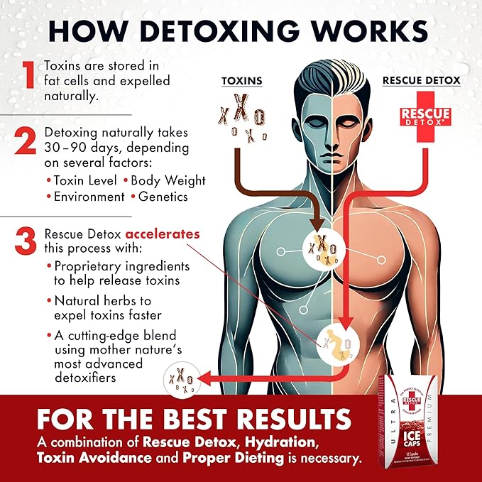 - Rescue Detox ICE Caps Kit are intended for people who are OVER 200lbs OR have high to extreme toxin levels.