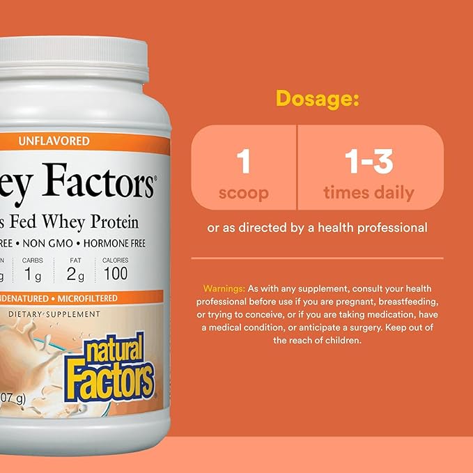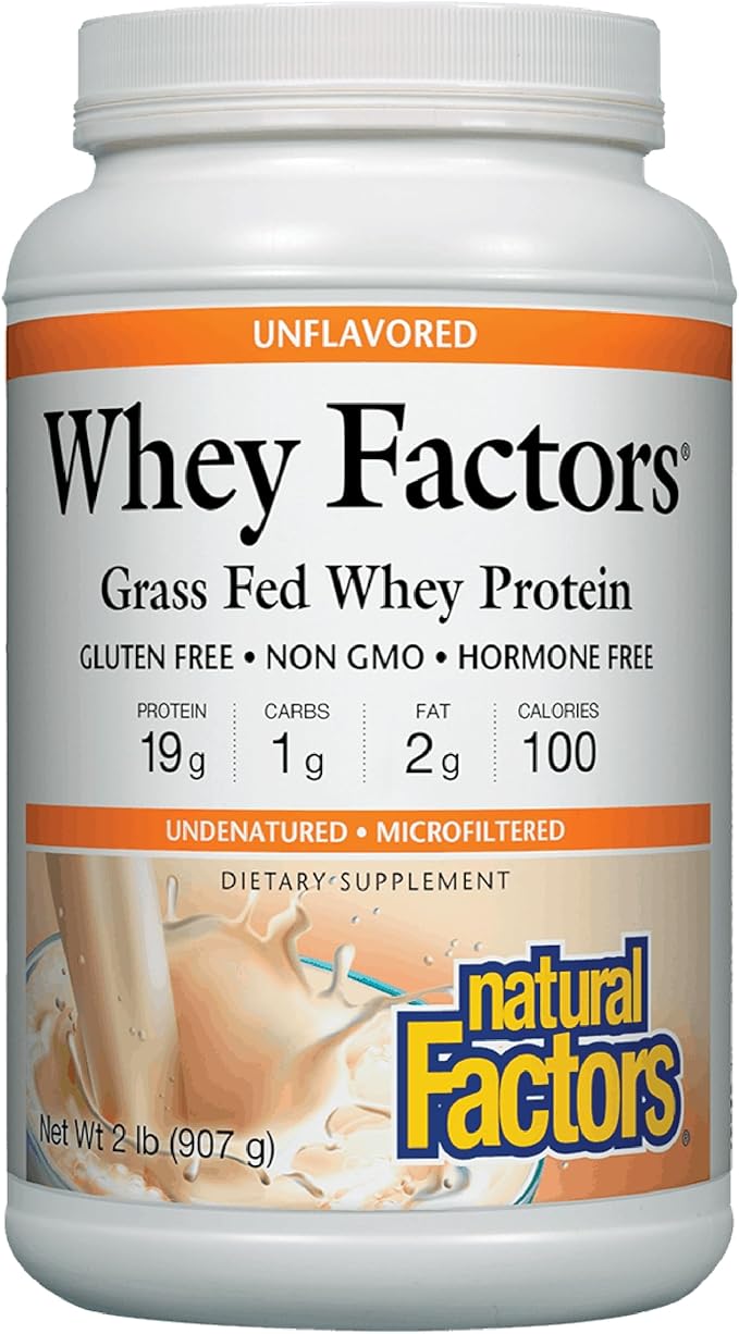 Whey Factors by Natural Factors, Grass Fed Whey Protein Concentrate, Aids Muscle Development and Immune Health, Unflavored, 2 lb