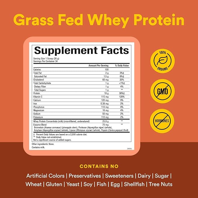 - A better whey: Derived from grass-fed cows, undenatured and microfiltered for high quality whey protein low in fat and lactose.