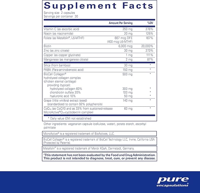 - Nail Strength Support: The Pure Encapsulations Hair/Skin/Nails Ultra Advanced Beauty Supplement combines essential wellness vitamins to fortify nail strength and thickness*