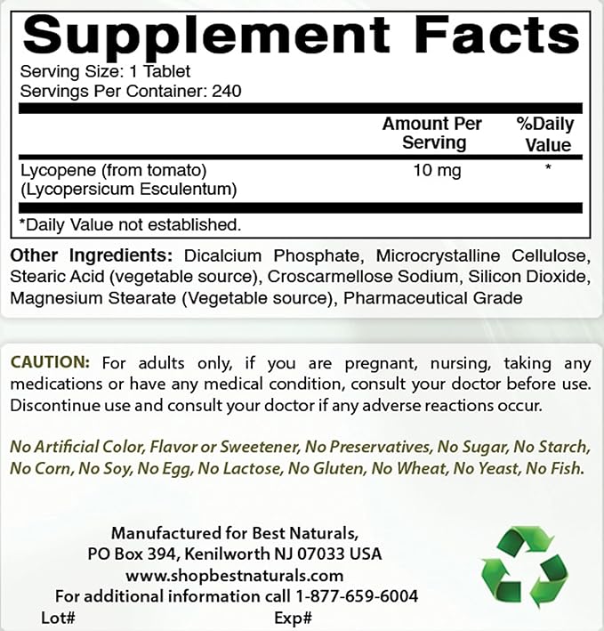 Best Naturals Lycopene Tomato Extract 10 mg 240 Tablets