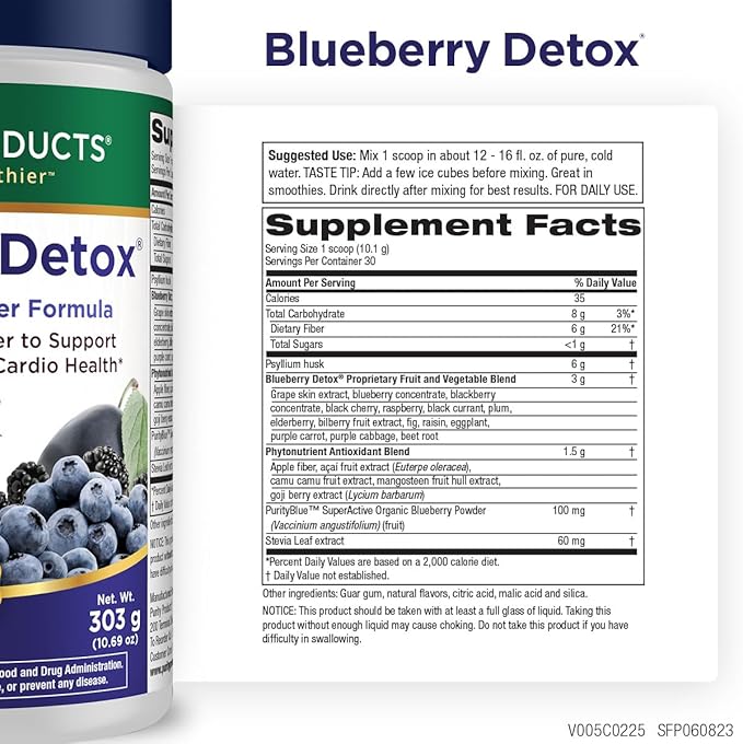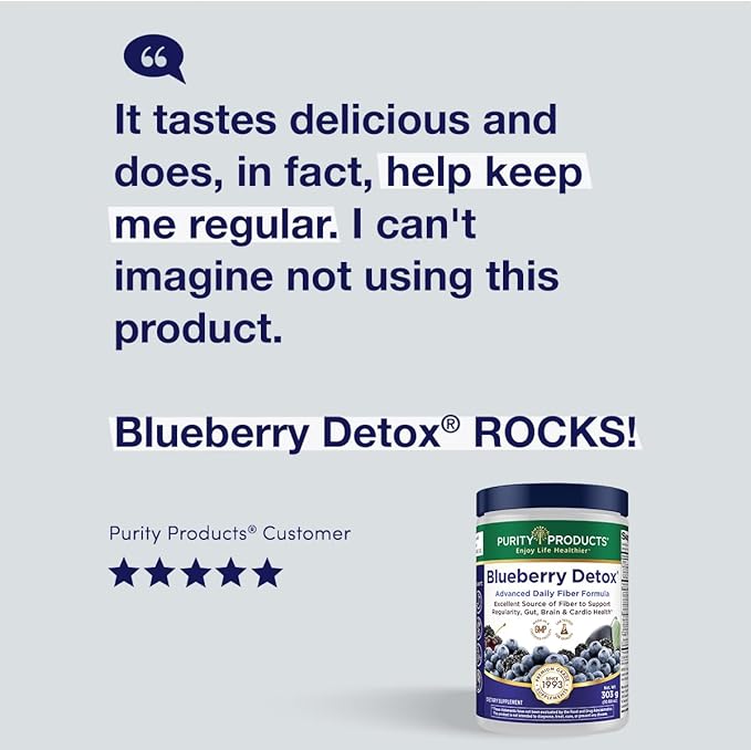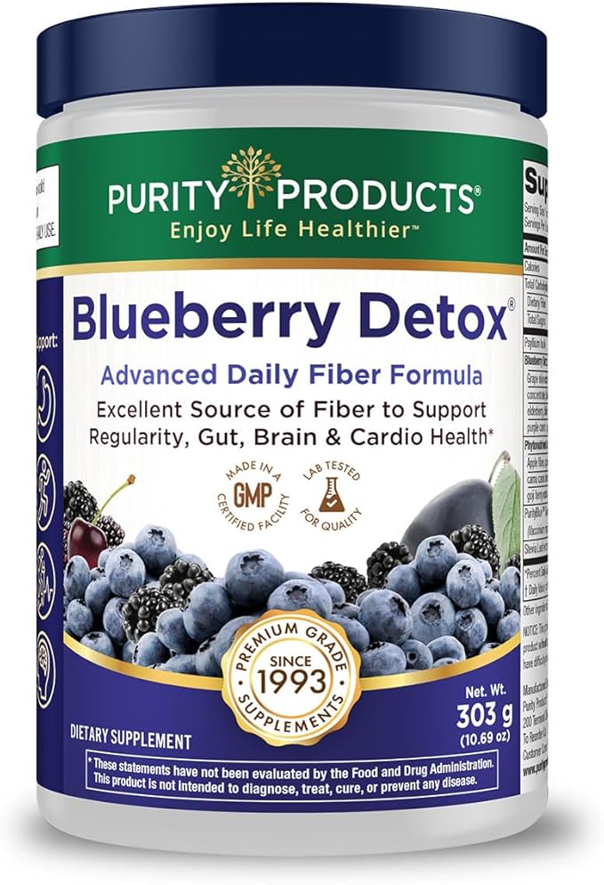 Advanced Blueberry Detox Daily Fiber Formula by Purity Products - Featuring PurityBlue Organic Wild Blueberries - A Full 6 Grams of Detoxifying, Regularity Promoting Prebiotic Fiber - 30 Servings