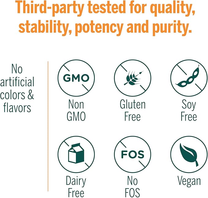 - 12.5 Billion CFU Per Day: Provides 12.5 billion CFU per day from two strains of Lactobacillus acidophilus, Bifidobacterium bifidum, Lactobacillus paracasei, Lactobacillus salivarius, and Bifidobacterium animalis subsp. lactis per dose.
