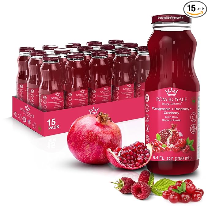 Pomegranate Raspberry Cranberry, 8.4 Ounce Glass Bottle (Pack of 15), Cold Pressed Juice, Non-GMO, Gluten Free, Kosher Certified, Preservative Free