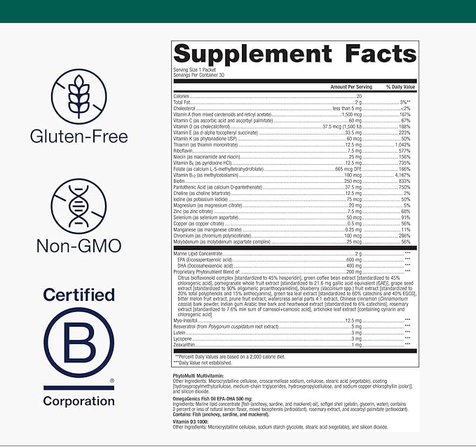 - Non-GMO Multivitamins: Take 1 Metagenics packet daily or as directed by your healthcare practitioner; products are non-GMO and gluten free