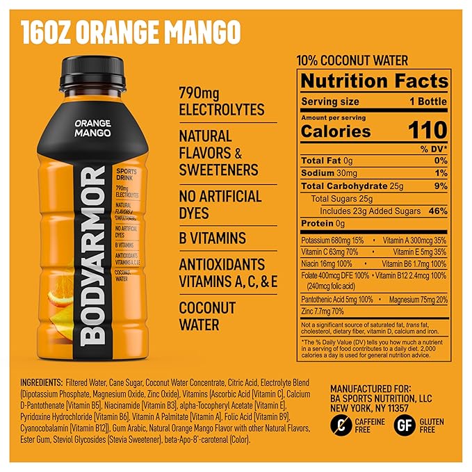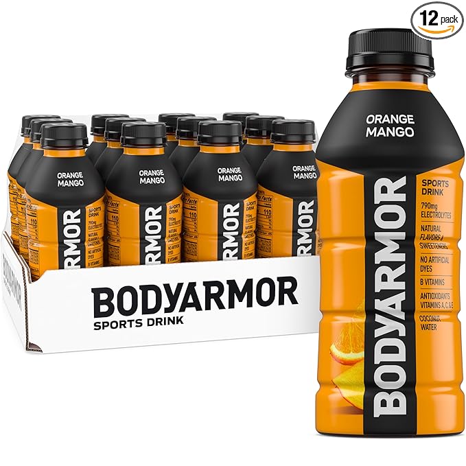 BODYARMOR Sports Drink Sports Beverage, Orange Mango, Coconut Water Hydration, Natural Flavors With Vitamins, Potassium-Packed Electrolytes, Perfect For Athletes, 16 Fl Oz (Pack of 12)