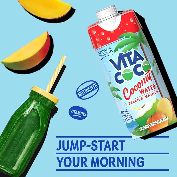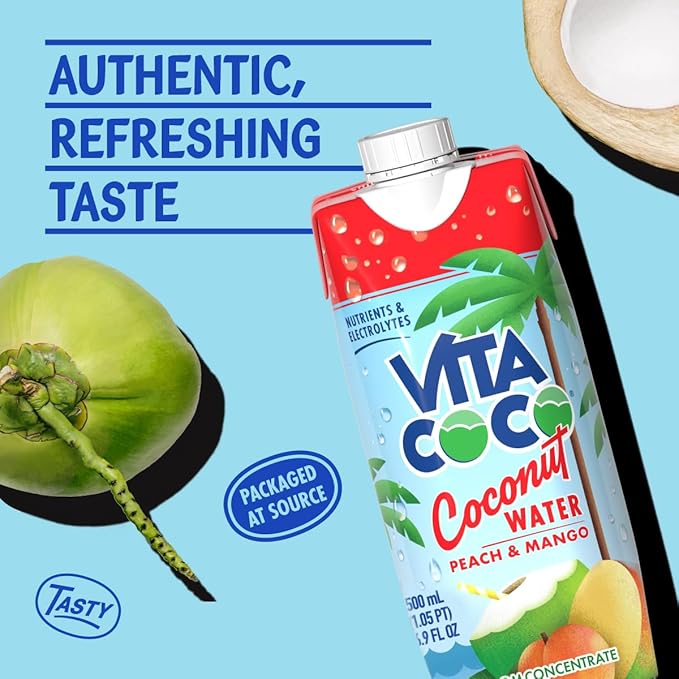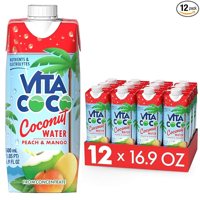 Vita Coco Coconut Water, Peach & Mango - Naturally Hydrating Electrolyte Drink - Smart Alternative to Coffee, Soda, and Sports Drinks - Gluten Free - 16.9 Fl Oz (Pack of 12)