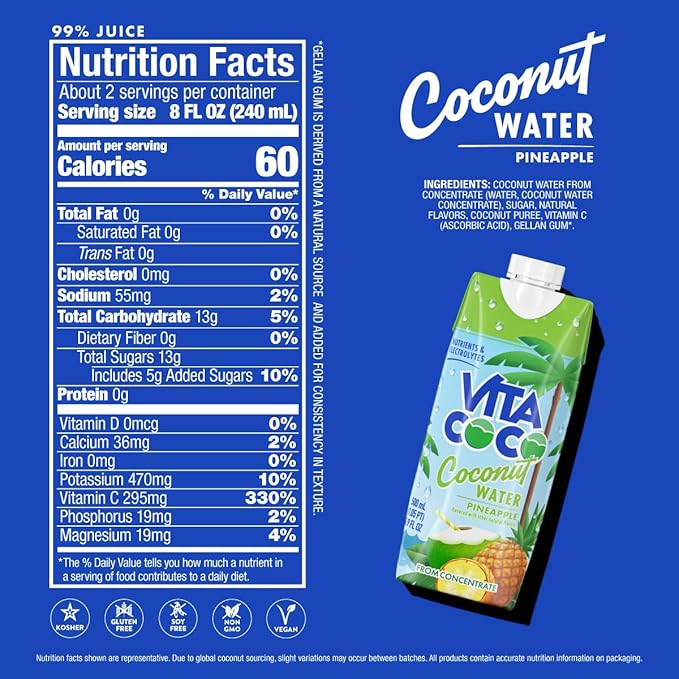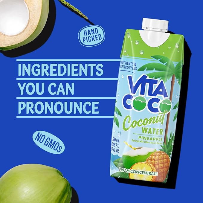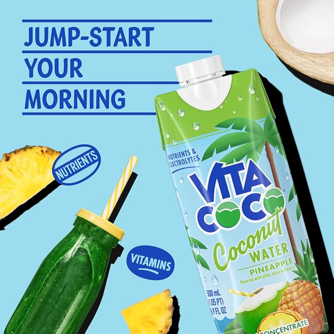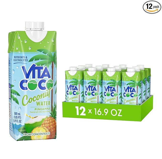 Vita Coco Coconut Water Naturally Hydrating Electrolyte Drink Smart Alternative to Coffee Soda and Sports Drinks Gluten Free, Pineapple, 16.9 Fl Oz (Pack of 12), 202.8 Fl Oz