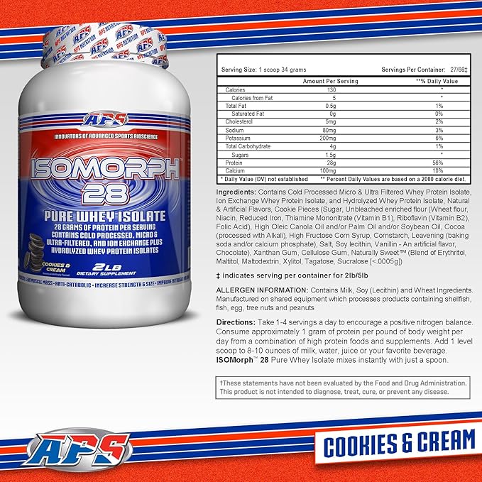 APS Nutrition IsoMorph 28 Protein Powder | Pure Whey Isolate | Cold Pressed, Ultra- Filtered, & Ion Exchange Isolates | 28g Protein | 2 Pound (Cookies & Cream)