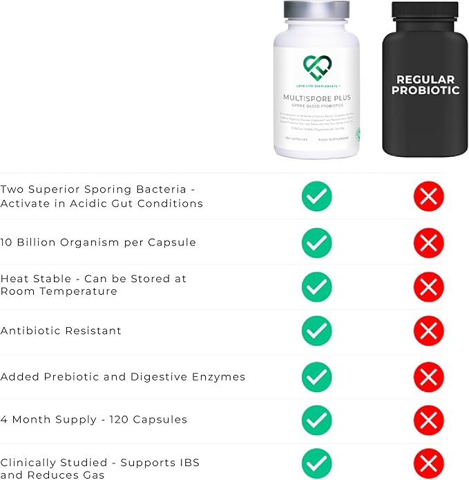 - FOUR-MONTH SUPPLY of Multispore Plus is free from fillers, anti-caking agents, and is non-GMO. Additionally, it is gluten-free, dairy-free, and soy-free, making it suitable for vegetarians and vegans. Proudly made in the UK under strict GMP certification, ensuring high quality and safety.