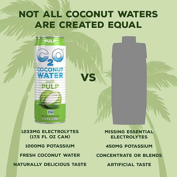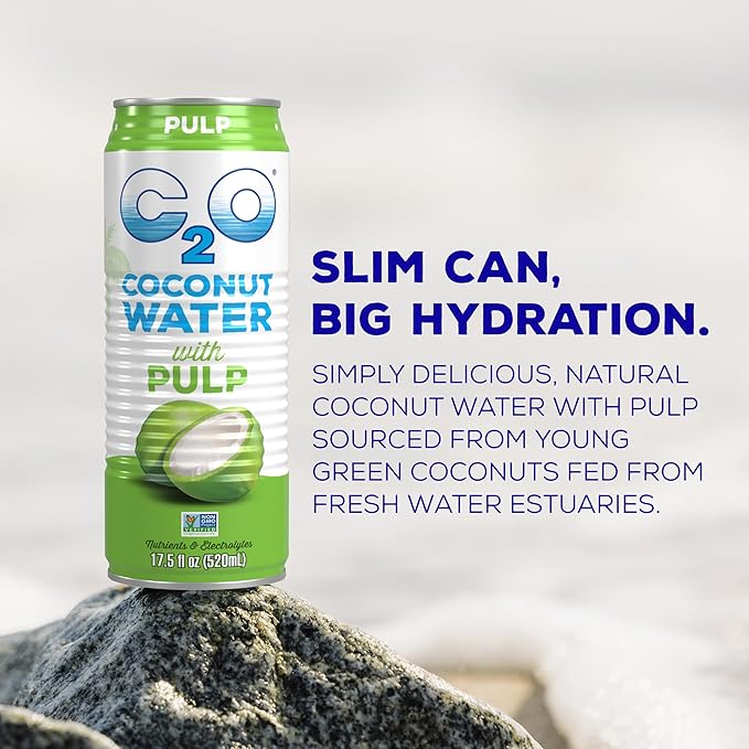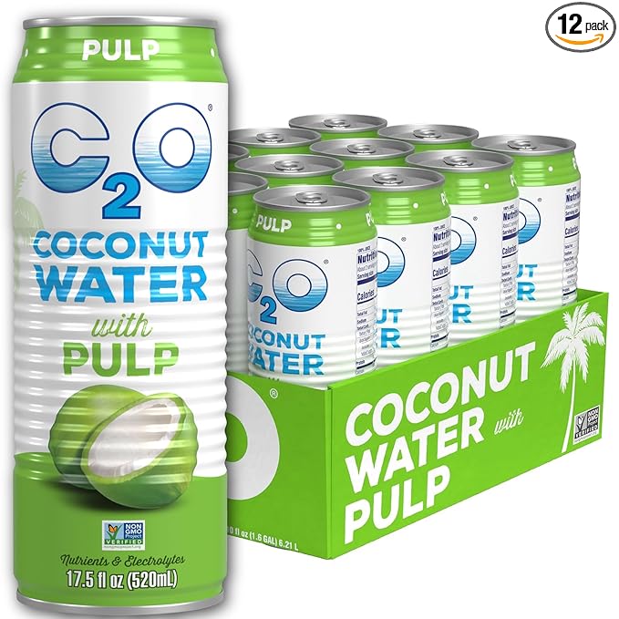 C2O - Coconut Water with Pulp (12 Pack) - Made with Fresh Coconut Water - Plant Based - Non GMO - Canned Water - Natural Hydration, Essential Electrolytes, & Potassium - 12 Cans, 17.5 FL OZ