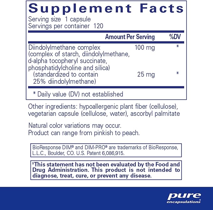 Pure Encapsulations DIMPRO 100 - Diindolylmethane Supplement - for Breast, Cervical & Prostate Health - Gluten Free & Vegan - 120 Capsules