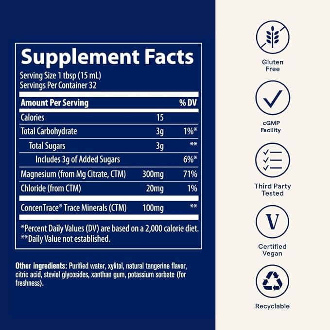 Trace Minerals Magnesium Liquid 300mg - Energy & Heart Health Support Supplement - Minerals to Aid Digestion & Hydration - Support Healthy Bones - Natural Tangerine Flavor, 16 fl oz (32 Servings)