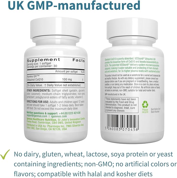 Igennus Advanced VESIsorb Ubiquinol 100mg 30 Softgels, 600% Bioavailability, Fast-Acting Water-Soluble Coenzyme Q10 Supplement for Energy & Heart, 1-Month Supply
