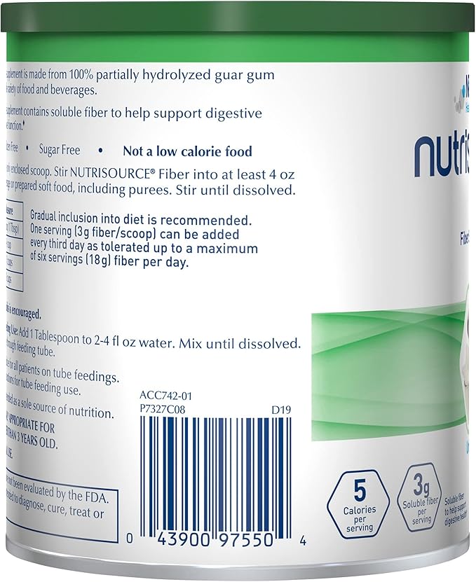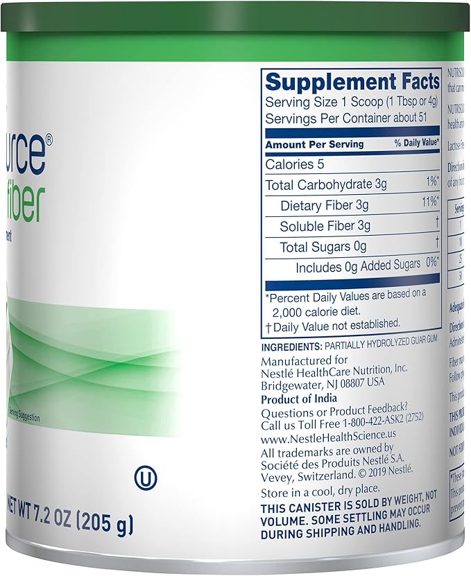 Nestle Nutrisource Fiber Fiber Supplement Unflavored 7.2 oz. Canister 4 Ct