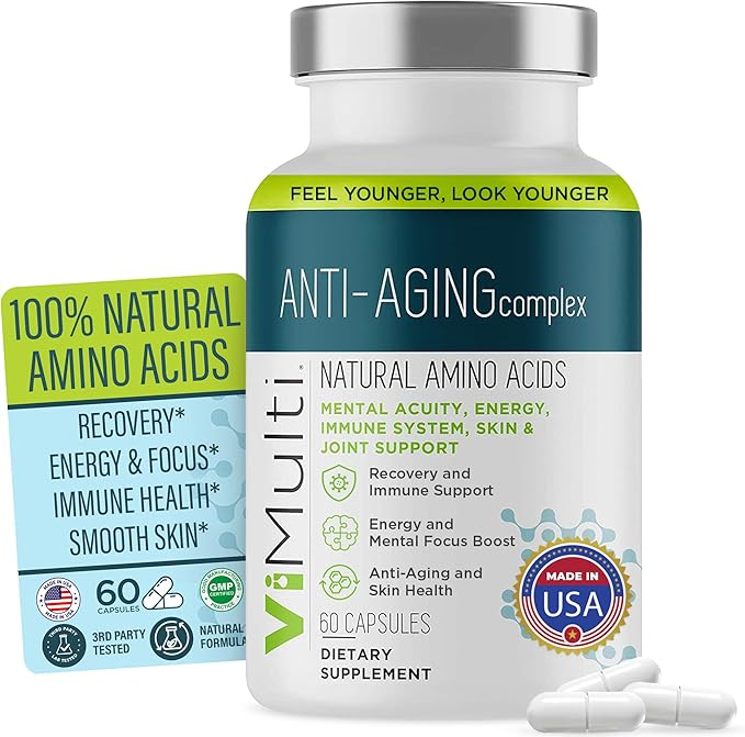 Vitmulti Anti-Aging Natural Amino Acids Supplement for Women & Men – Supports Immune Health, Energy, Smoother Skin Tone, & Restorative Sleep, Anti-Aging Supplement Pills for Longevity, 60 Capsules