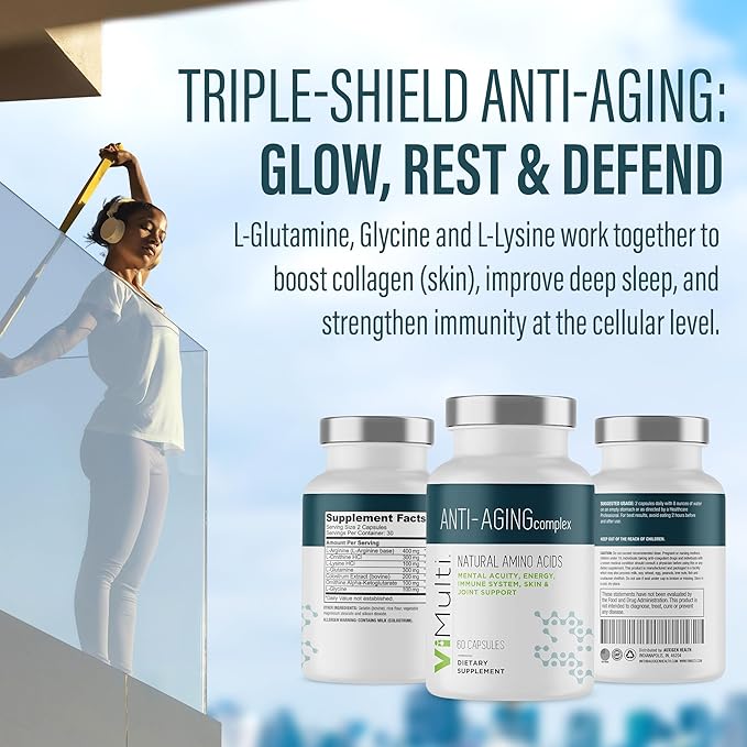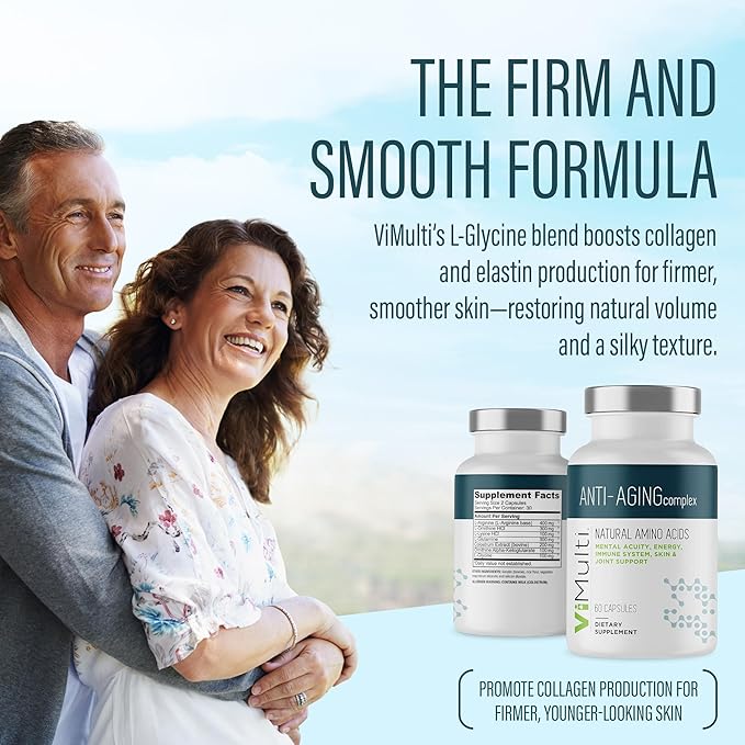 - RESTORE YOUR HEALTHY GLOW: ViMulti Anti-Aging Supplement helps restore your skin's natural integrity, boosting vitality with powerful skin vitamins. Keep your youthful appearance intact with a daily dose of amino acids capsules, glycine powder, and lysine capsules, promoting a radiant, glowing complexion over time.