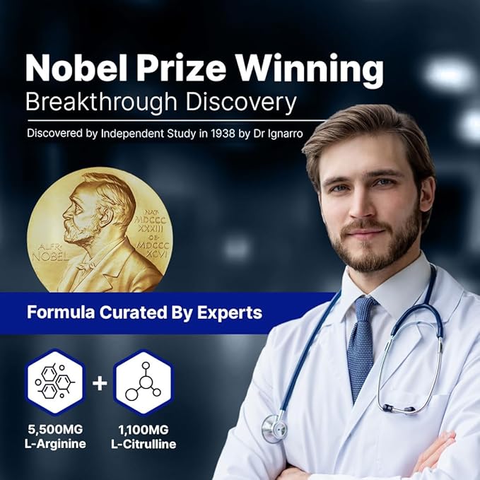 - BASED ON AN AWARD WINNING NITRIC OXIDE DISCOVERY: L-arginine Pro is formulated based on a Nobel Prize winning discovery breakthrough showing how nitric oxide supports cardiovascular health. L-Arginine Pro stands out with its high-potency blend of 5,500mg of L-Arginine and 1,100mg of L-Citrulline an effective combination that enhances nitric oxide production more than those that offer only L-Arginine.