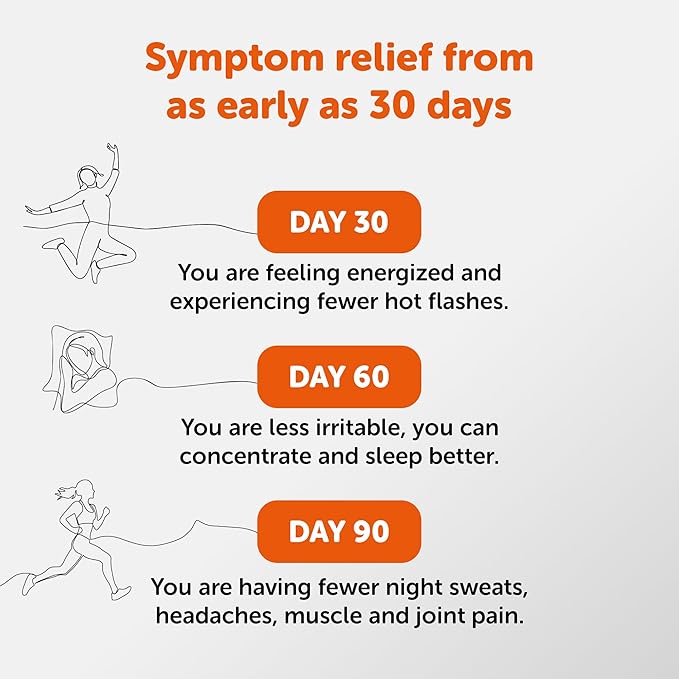- Experience Results in Just 30 Days: Our multi-symptom menopause support helps your body self-regulate hormone production, providing 24-hour symptom relief*. Feel better, sleep better, and live better with just 2 capsules daily after your first meal