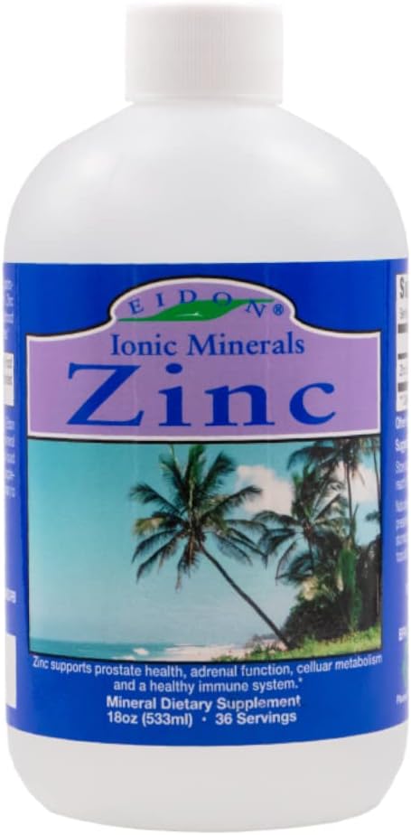 Eidon Ionic Minerals Liquid Zinc Concentrate - Ionic Zinc Supplement Drops for Adults and Kids, Support Immune System, Hair and Skin, Liver and Kidney Health, Relieves Stress - 18 oz