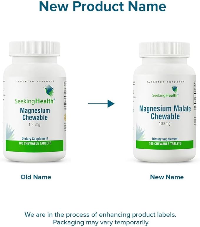 Seeking Health Magnesium Malate Chewable Tablet, 100 mg Dimagnesium Malate Supplement to Support Sleep and Balanced Mood, High-Absorption Chelated Magnesium, Vegan & Vegetarian (100 lozenges)