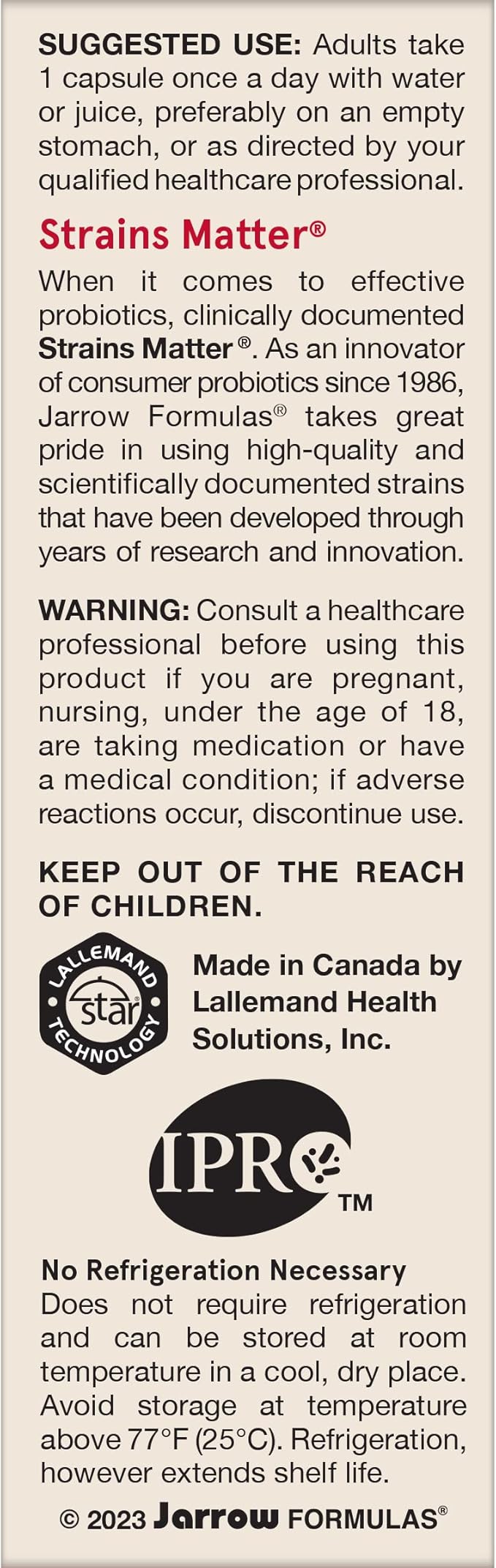 Jarrow Formulas Probiotics for Women and Men Digestive Health - Probiotic Nutritional Supplements, Gut Health, 25 Billion CFU, 30 Capsules, 30 Day Supply
