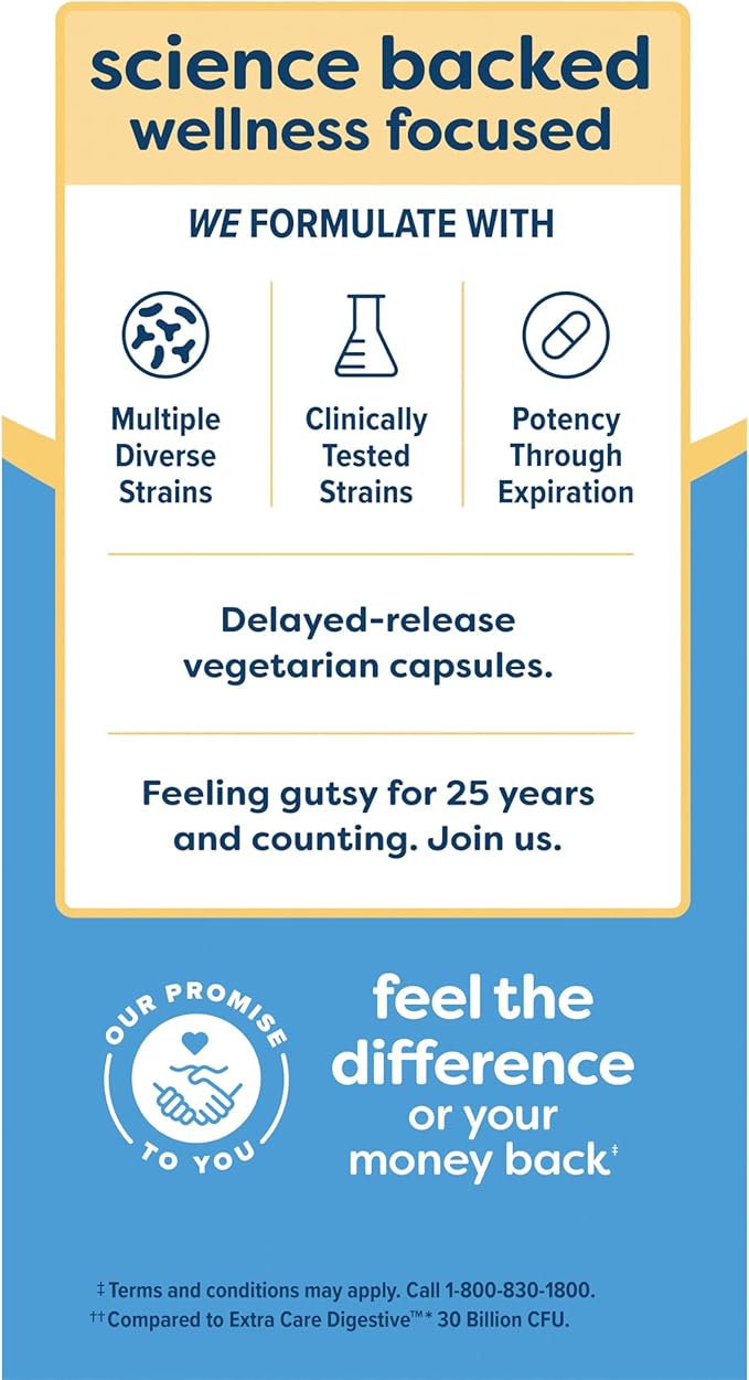 - MULTIPLE BENEFITS: Extra Care probiotic helps proactively support digestive health, along with probiotic strain B. lactis Bl-04 for respiratory and immune support (2)