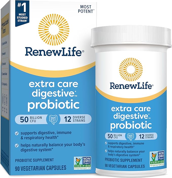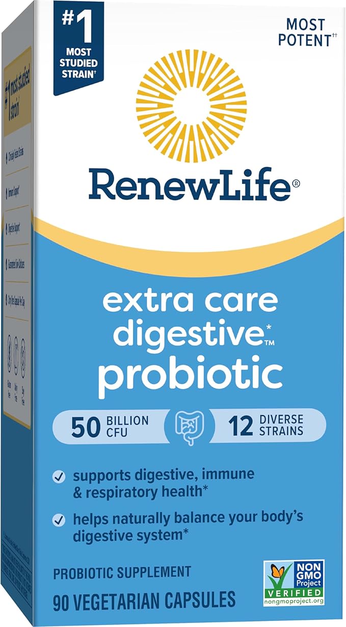 - NO. 1 MOST-STUDIED STRAIN: Renew Life's Extra Care Probiotic includes the No. 1 most-studied strain, Lactobacillus rhamnosus GG (1)(2)