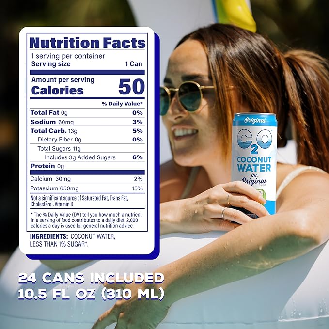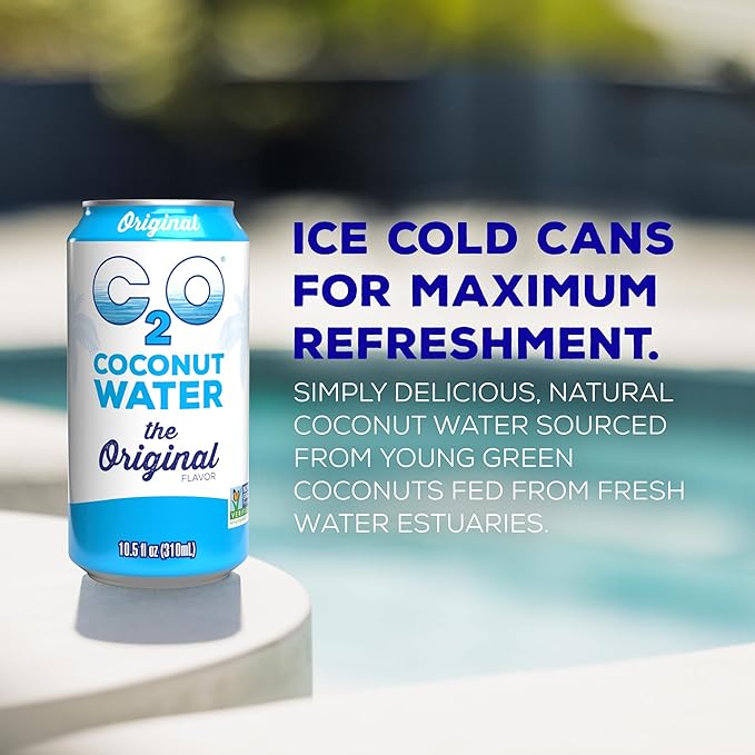 C2O - Coconut Water, The Original Flavor (24 Pack) - Made with Fresh Coconut Water - Plant Based - Non GMO - Canned Water - Natural Hydration, Essential Electrolytes, & Potassium - 24 Cans, 10.5 FL OZ