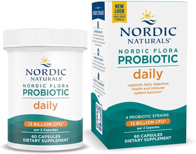 - WHY PROBIOTICS - Nordic Flora Probiotic Daily is a blend of four probiotic strains with 12 billion cultures & prebiotics. Taken daily, this probiotic aids in the absorption of nutrients supporting optimal wellness.