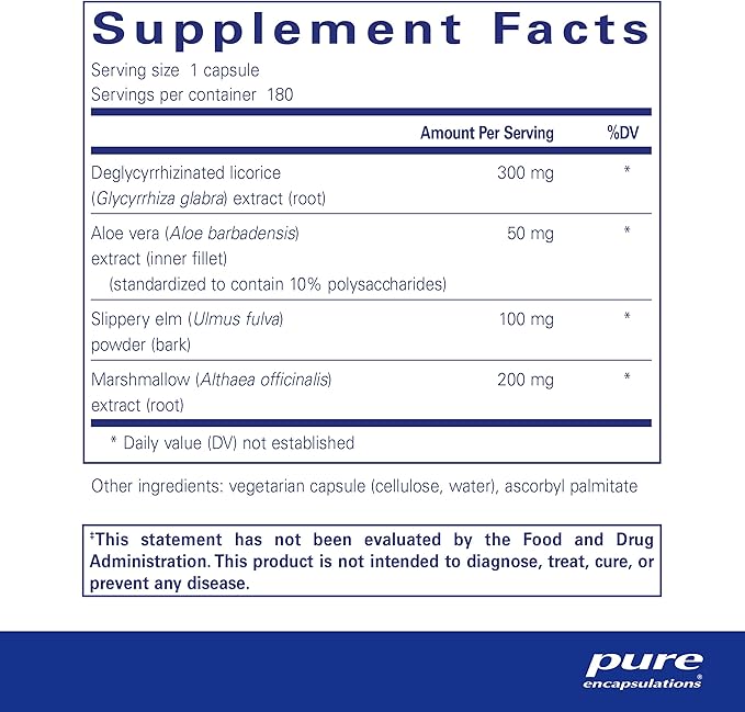 Pure Encapsulations DGL Plus - Gut Health Supplements for Men & Women - with Marshmallow Root, Aloe Vera Extract & Slippery Elm Bark - Non-GMO & Vegan - 180 Capsules
