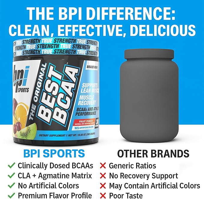 BPI Sports Best BCAA Powder - Muscle Recovery Support - Branched Chain Amino Acids | Building Blocks of Protein and Muscle - Post Workout Recovery – Hydration - Fruit Punch, 30 Servings