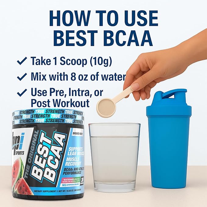 BPI Sports Best BCAA Powder - Muscle Recovery Support - Branched Chain Amino Acids | Building Blocks of Protein and Muscle - Post Workout Recovery – Hydration - Watermelon Ice, 30 Servings