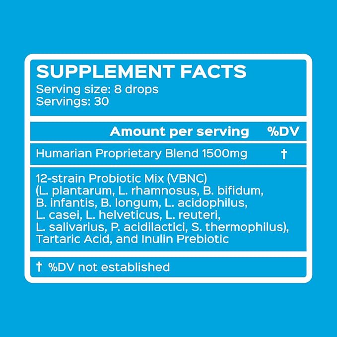 Probonix Humarian Liquid Probiotics for Adults - 12-Strain Probiotic Drops to Fortify Gut Health, Immunity and More - 30-Day Supply - Delicious Grape Flavor