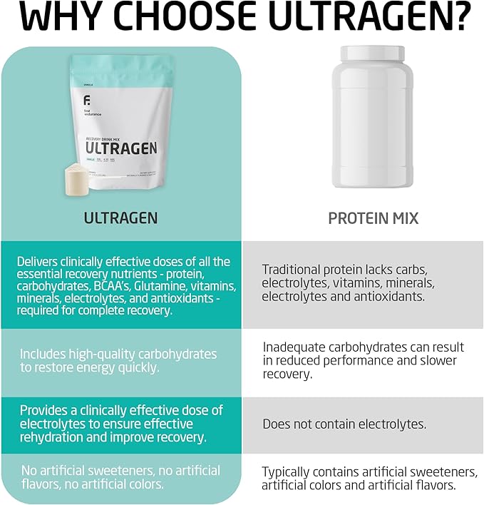 - A COMPLETE RECOVERY FORMULA - Ultragen delivers clinically effective doses of all the essential recovery nutrients - protein, carbohydrates, BCAA’s, Glutamine, vitamins, minerals, electrolytes, and antioxidants - required for complete recovery so you can be your best day after day. This high-protein drink mix, with 15 servings, is engineered to enhance recovery and improve endurance.