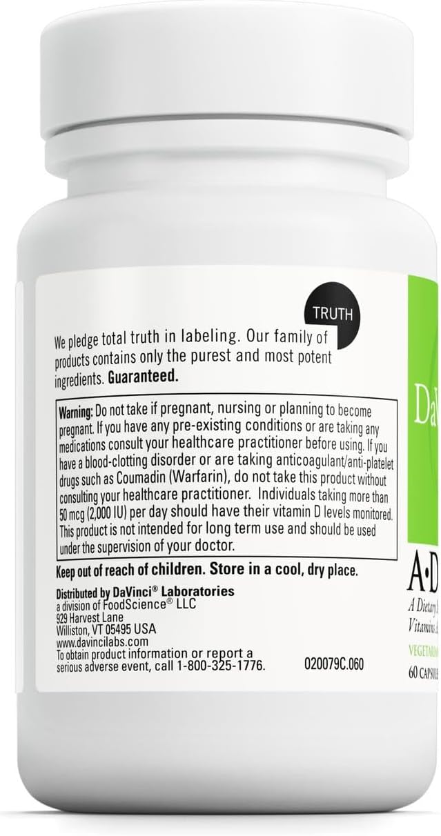 - Flavor : DAVINCI Labs ADK - Helps Support Bone, Heart & Immune Health* - Dietary Supplement with Vitamins A, D3 & K2 (as MK-7) - Vegetarian, Gluten Free & Soy Free - 60 Capsules DAVINCI Labs ADK - Helps Support Bone, Heart & Immune Health* - Dietary Supplement with Vitamins A, D3 & K2 (as… See more